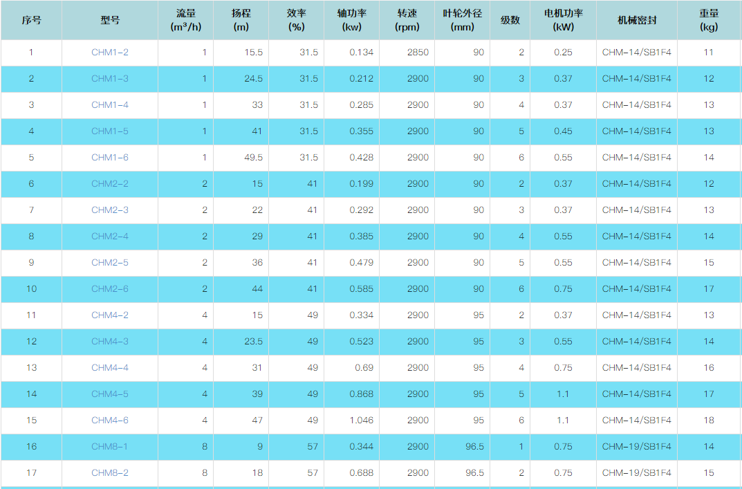 流量范围:0.4m³/h~28m³/h 扬程范围:6m~60m